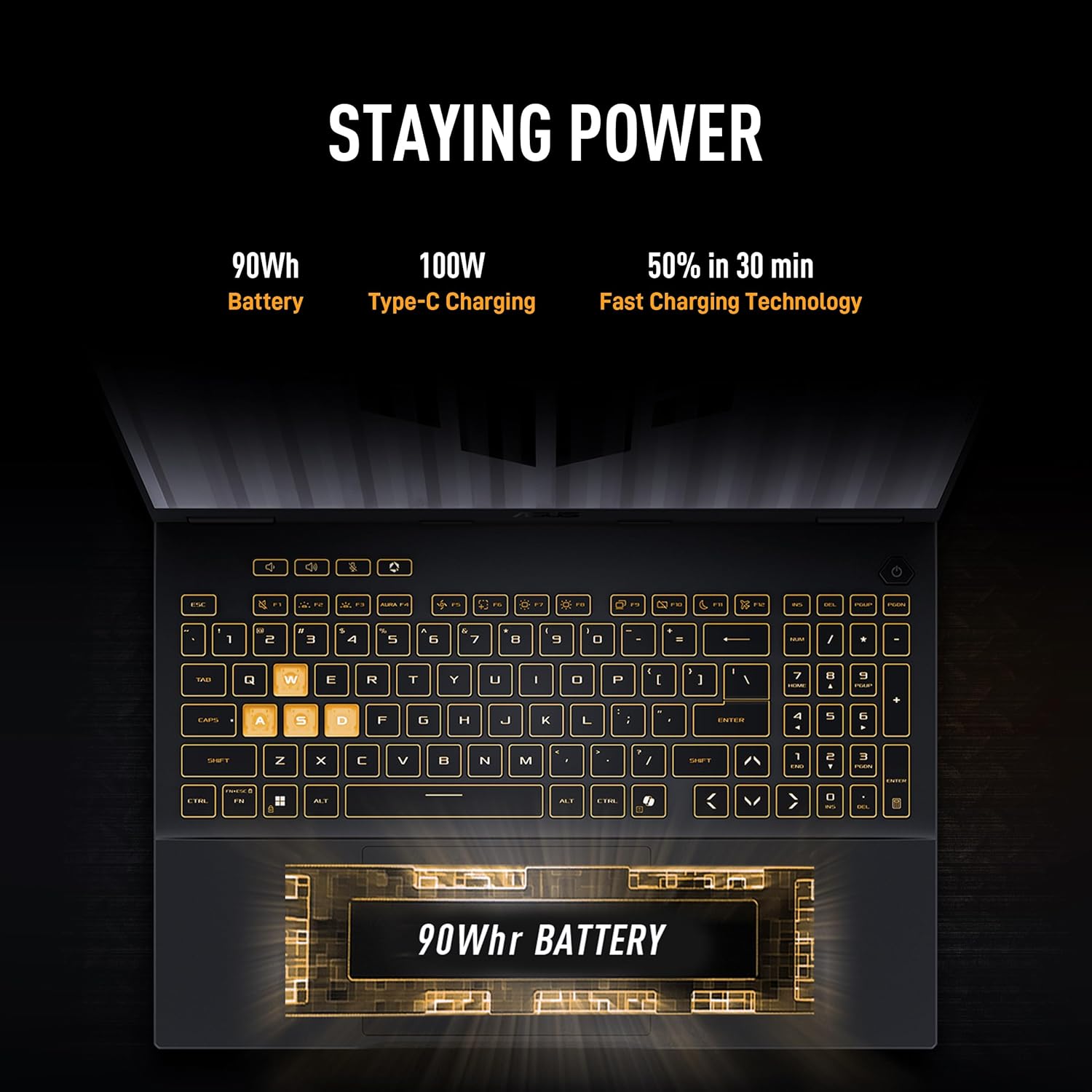 Certified with MIL-STD-810H durability standards, the laptop is built to withstand drops, vibrations, humidity, and extreme temperatures. The sturdy hinge and reinforced corners provide long-term reliability, which is one of the biggest selling points of the TUF series.